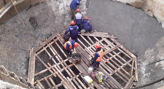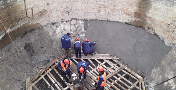 На объекте "Реконструкция биологических очистных сооружений г. Родники Ивановской области" на вторичных отстойниках завершаются ремонтно-восстановительные работы: восстановлено бетонное основание старой части резервуара, устранены активные течи.